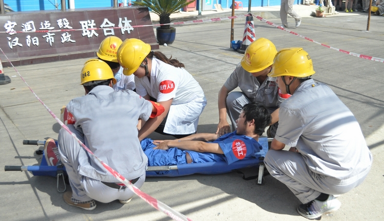6月16日下午,鐘鑫公司安全演練比賽在玉龍路地鐵項(xiàng)目部舉行。三支來(lái)自地鐵項(xiàng)目部的隊(duì)伍參加了此次比賽。鐘鑫公司經(jīng)理王智高、書(shū)記王繁及集團(tuán)公司安全文明辦羅艷明部長(zhǎng)觀(guān)看了比賽。來(lái)自漢口北項(xiàng)目部、三號(hào)線(xiàn)六標(biāo)項(xiàng)目部和玉龍路地鐵項(xiàng)目部的三支參賽隊(duì)伍分別演練了工人高空跌傷、負(fù)高空墜落物體打擊、盾構(gòu)施工中機(jī)械傷害等科目。