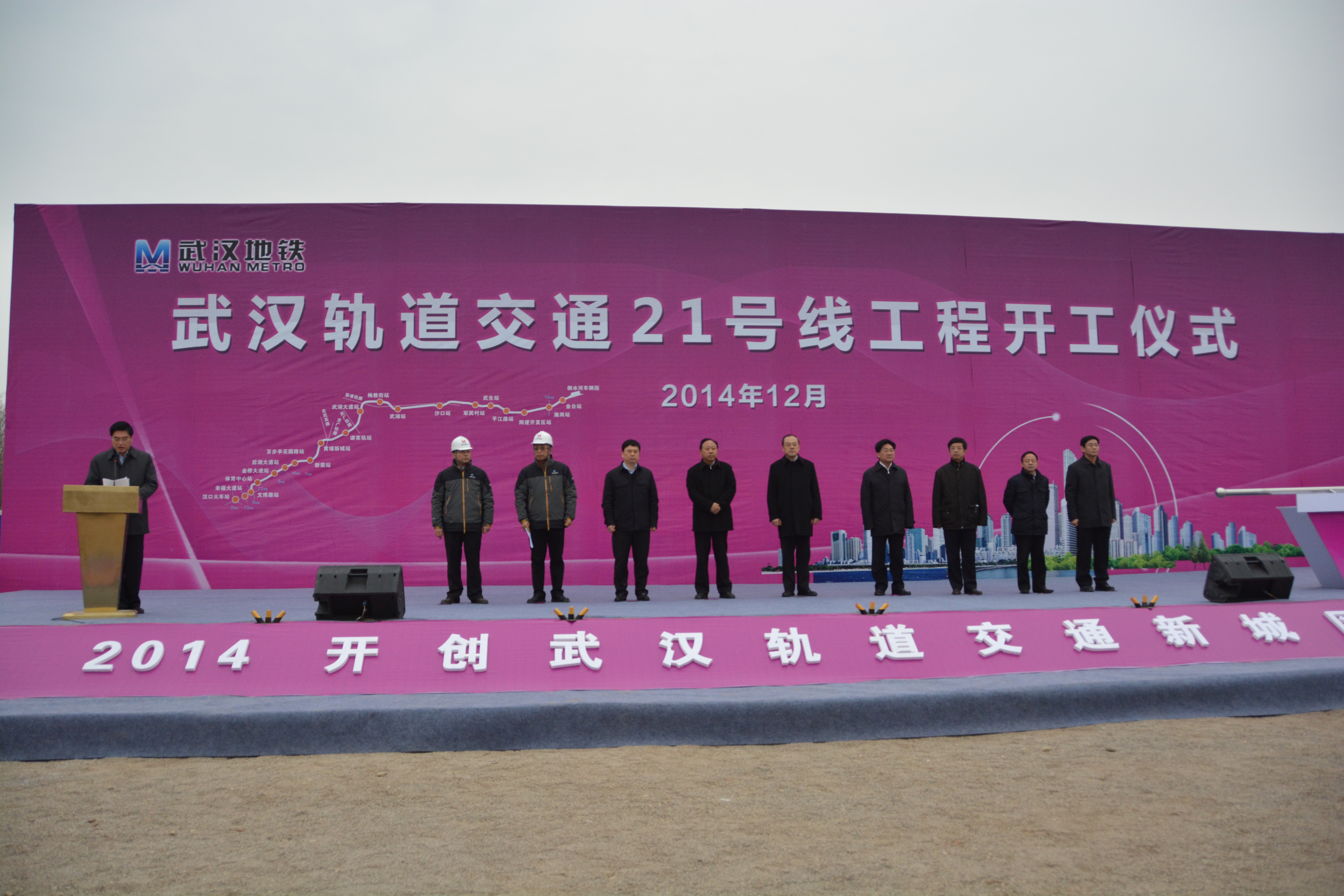 2014年12月27日上午,武漢軌道交通21號線在新洲區(qū)施崗正式開工,省委常委、市委書記阮成發(fā),市政協(xié)主席吳超,常務副市長賈耀斌、新洲區(qū)委書記胡亞波等領導出席開工儀式,參加開工儀式的還有我公司總經理王智高及部分職工。