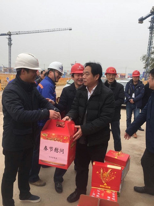 在夾套河骨干箱涵工程施工現(xiàn)場(chǎng),金國發(fā)董事長(zhǎng)囑咐各個(gè)工程標(biāo)段項(xiàng)目部要切實(shí)把職工生活安排好,為施工人員做好后勤保障。當(dāng)?shù)弥?/font>整個(gè)夾套河箱涵工程仍有500余名工人在春節(jié)期間堅(jiān)守施工一線,他深情地表示,工人們舍小家顧大家,為了武漢箱涵工程項(xiàng)目建設(shè)爭(zhēng)分奪秒,鄭重代表城投公司廣大干部職工向工人們表示了最真誠的感謝,并致以新春祝福。李兵總經(jīng)理囑咐大家在節(jié)假日施工時(shí)要科學(xué)組織,全面統(tǒng)籌協(xié)調(diào),精心布局,節(jié)日期間堅(jiān)持施工精神可嘉,但始終要牢記安全生產(chǎn)這一條主線,萬萬不能絲毫麻痹大意,同保工程安全質(zhì)量與進(jìn)度,建設(shè)精品箱涵工程,為大武漢城市排水防澇工程建設(shè)貢獻(xiàn)力量。