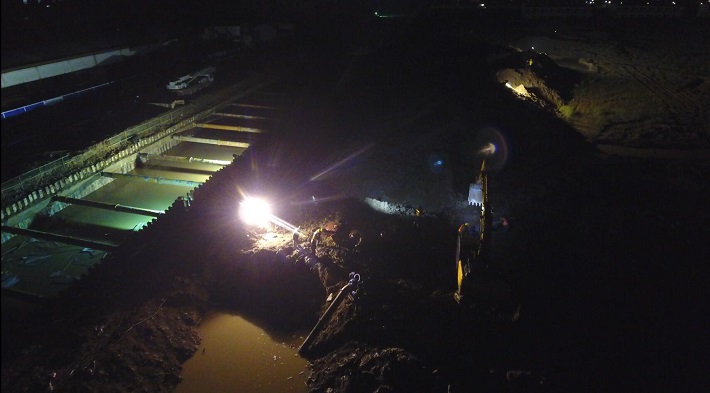 4月以來,武漢普降大雨,漢陽市政承建的夾套河骨干箱涵工程由于地勢較低,近日以來積水嚴(yán)重,二標(biāo)項(xiàng)目經(jīng)理付曉陽發(fā)現(xiàn)險(xiǎn)情后,第一時(shí)間向公司領(lǐng)導(dǎo)匯報(bào)了險(xiǎn)情,并動員項(xiàng)目部所有工作人員,迅速組織該工地所有機(jī)械到一線,全天24小時(shí)進(jìn)行明渠開挖導(dǎo)流工作,確保當(dāng)?shù)鼐用竦纳畈辉偈軡n水的困擾。