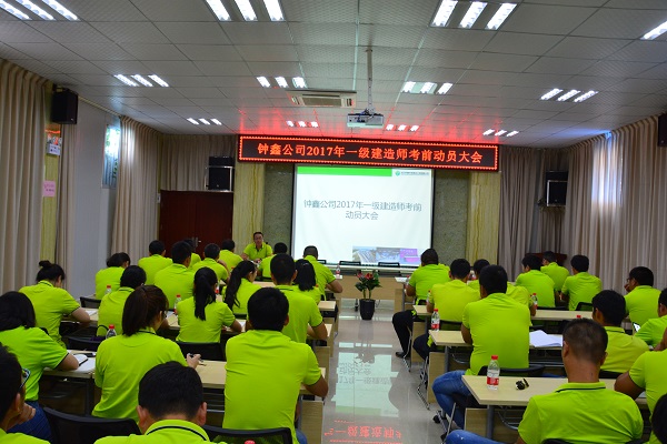 8月18日下午14:30,鐘鑫公司2017年一級建造師考前動員大會在公司大會議室召開。出席本次大會的有鐘鑫公司董事長方紫微,總工程師汪定國和總經(jīng)理助理林光洪,各職能部門負責人和各項目經(jīng)理以及一建報考人員總計60人。會議由方紫微主持。