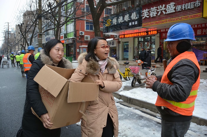 指針來到下午14時,鐘鑫市政“鐵軍”在公司領(lǐng)導(dǎo)的帶領(lǐng)下,搶險隊伍馬不停蹄地來到了國博大道。勘探完現(xiàn)場之后立即做出工作部署,將全體人員和機(jī)械按照路段劃分為三個路段進(jìn)行除雪破冰。下午的國博大道,寒風(fēng)凜冽,氣溫格外寒冷。好在鐘鑫公司的女同志們不顧嚴(yán)寒,精心準(zhǔn)備了充足的姜湯和熱騰騰的包子,為饑寒交迫的搶險隊伍送來了熱飲和食物,姜湯驅(qū)除寒氣,食物更暖人心,隊伍在下午18時順利完成了清掃任務(wù)。期間,方紫微帶領(lǐng)部分人員火速馳援馬滄湖路進(jìn)行路面清掃,擼起袖子和大家伙兒一起干!清掃完畢的馬滄湖路煥然一新。