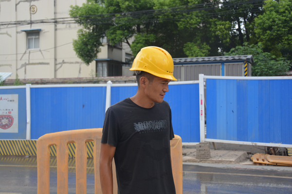 初次見面,徐軍濤害羞且寡言,目光所及都是施工作業(yè),他的專注會讓人覺得走近拍攝是對他的一種打擾。清晨亮起的微光仿佛是一天高強度工作開始的訊號,從訊號發(fā)出到進入奮戰(zhàn)狀態(tài)之間無縫銜接。夏季武漢涼爽的早晨到9點就結(jié)束了。烈日炙烤下的施工現(xiàn)場讓人不禁感嘆時間過得真慢啊,真想一眨眼的功夫這暑氣便能褪去。晴空萬里,天上沒有一絲云彩,太陽把地面烤得滾燙。一陣熱風刮來,從地上卷起一股熱浪使人感到陣陣窒息。雜草抵擋不住太陽的曝曬,葉子都卷成了細條,但徐軍濤卻像沒有感覺到這酷暑似的繼續(xù)工作。