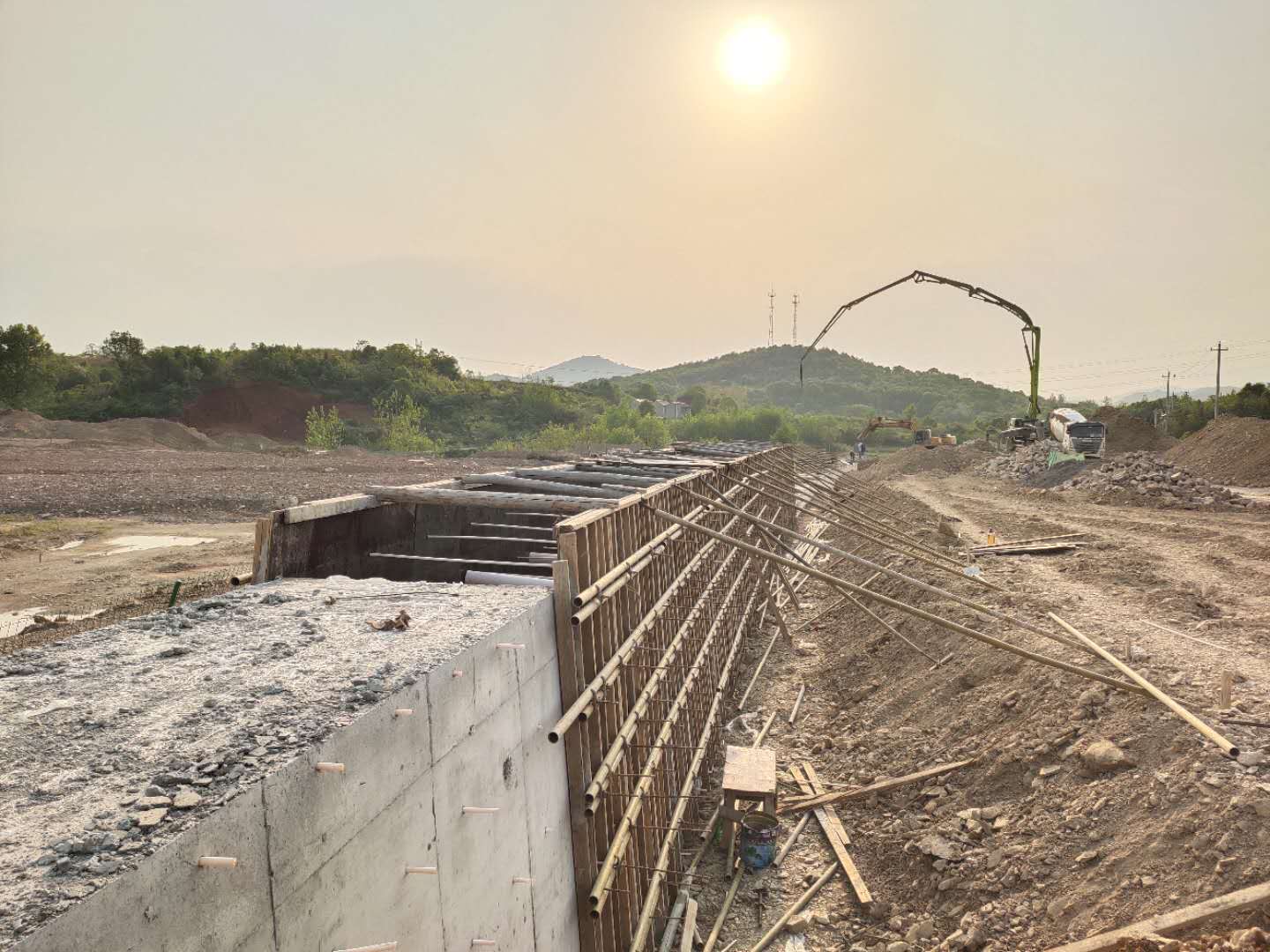 截止1月底,擋土墻施工完成300米,累計完成27%;雨水管道完成300米,累計完成27%;挖方完成6.6萬方,累計完成63.2%;填方完成4萬方,累計完成93.7%。受疫情影響,2個月處于停滯狀態(tài)。為保障項目安全有序復(fù)工,盡快把失去的工期“搶”回來,該項目部第一時間了解當?shù)貜?fù)工復(fù)產(chǎn)要求以及尋求武漢政策支持,分期分批進駐項目現(xiàn)場。嚴格按照疫情防控方案落實各項工作,全體員工租住當?shù)鼐用衩穹?,一棟兩層,分別作為會議室和住宿,按照一人一間房安排住宿;項目現(xiàn)場通過微信群、宣傳標語和現(xiàn)場展板等方式積極開展宣傳,施工現(xiàn)場采取了封閉式管理、實行全員戴口罩,提前儲備了口罩、護目鏡、消毒水、溫度計等防疫物資,保障項目現(xiàn)場防疫物資不中斷;每日為項目人員測量體溫、入場檢測實名登記、進入項目車輛及人員定時消毒和分批就餐等手段切實做好施工期間防疫工作。確保了防疫生產(chǎn)“兩不誤”。整個項目部團結(jié)一心,鼓足干勁,奔著共同目標毫不松懈,挑燈夜戰(zhàn)趕進度,爭分奪秒搶工期。通過加大人、材、機的投入、增加斷面等多種方式加快施工,截止4月16日,擋土墻完成施工220米,累計完成520米,完成47.27%;截洪溝溝槽開挖150米,混凝土澆筑100米,完成9%。工程進度嚴格按總進度計劃有序進行。