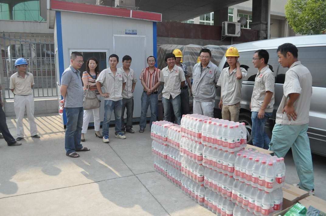 時(shí)值夏季高溫之際,2012年6月13日,鐘鑫公司黨支部書記王繁率公司各職能部門負(fù)責(zé)人赴各在建工地,代表公司向不畏高溫、始終堅(jiān)守在施工一線辛勤工作的員工表示親切的慰問(wèn)。