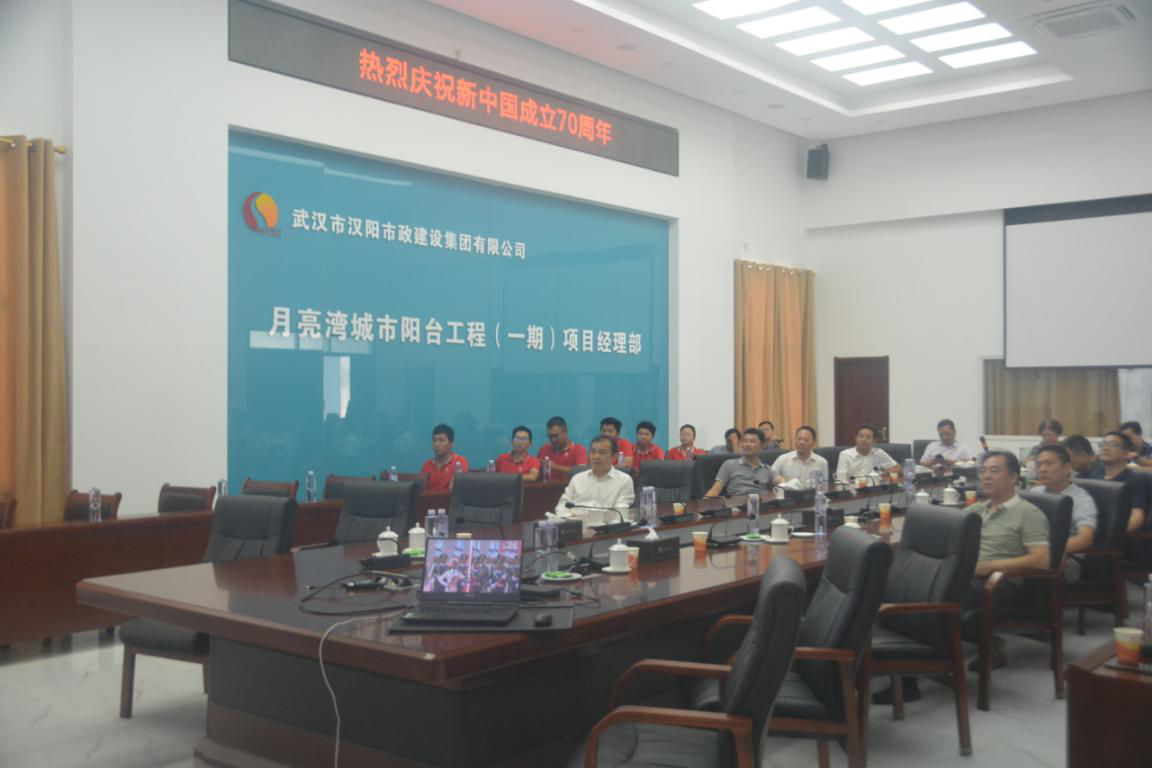 嚴(yán)悌文一行首先來到月亮灣項(xiàng)目施工現(xiàn)場(chǎng)進(jìn)行了實(shí)地調(diào)研,在董事長(zhǎng)曹元鑫及項(xiàng)目經(jīng)理魏偉的介紹下了解了項(xiàng)目的概況、最新進(jìn)展及遇到的重難點(diǎn)問題。他為建設(shè)在一線的工作人員送去了節(jié)日祝福,并對(duì)他們持續(xù)堅(jiān)守、奮勇拼搏的精神表達(dá)了充分的認(rèn)可和贊揚(yáng),希望項(xiàng)目建設(shè)人員繼續(xù)保持良好的工作勢(shì)頭,排除萬難,把月亮灣項(xiàng)目建設(shè)成為優(yōu)質(zhì)的精品工程。隨后,嚴(yán)悌文一行在月亮灣項(xiàng)目部會(huì)議室和公司領(lǐng)導(dǎo)及項(xiàng)目部員工一起觀看了盛大而濃重的國(guó)慶盛典,一起慶祝祖國(guó)70周年華誕。