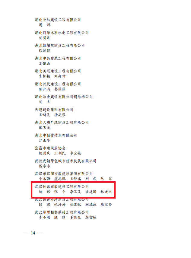 2020年8月24日,湖北省建筑業(yè)協(xié)會發(fā)布《關(guān)于表揚(yáng)抗擊新冠肺炎疫情表現(xiàn)突出的先進(jìn)集體和個人的通報》(鄂建協(xié)202042號),鐘鑫公司榮獲抗擊新冠肺炎疫情表現(xiàn)突出的先進(jìn)集體稱號;鐘鑫公司林光洪、魏偉、張平、李衛(wèi)民、宋建國榮獲抗擊新冠肺炎疫情表現(xiàn)突出的先進(jìn)個人稱號。