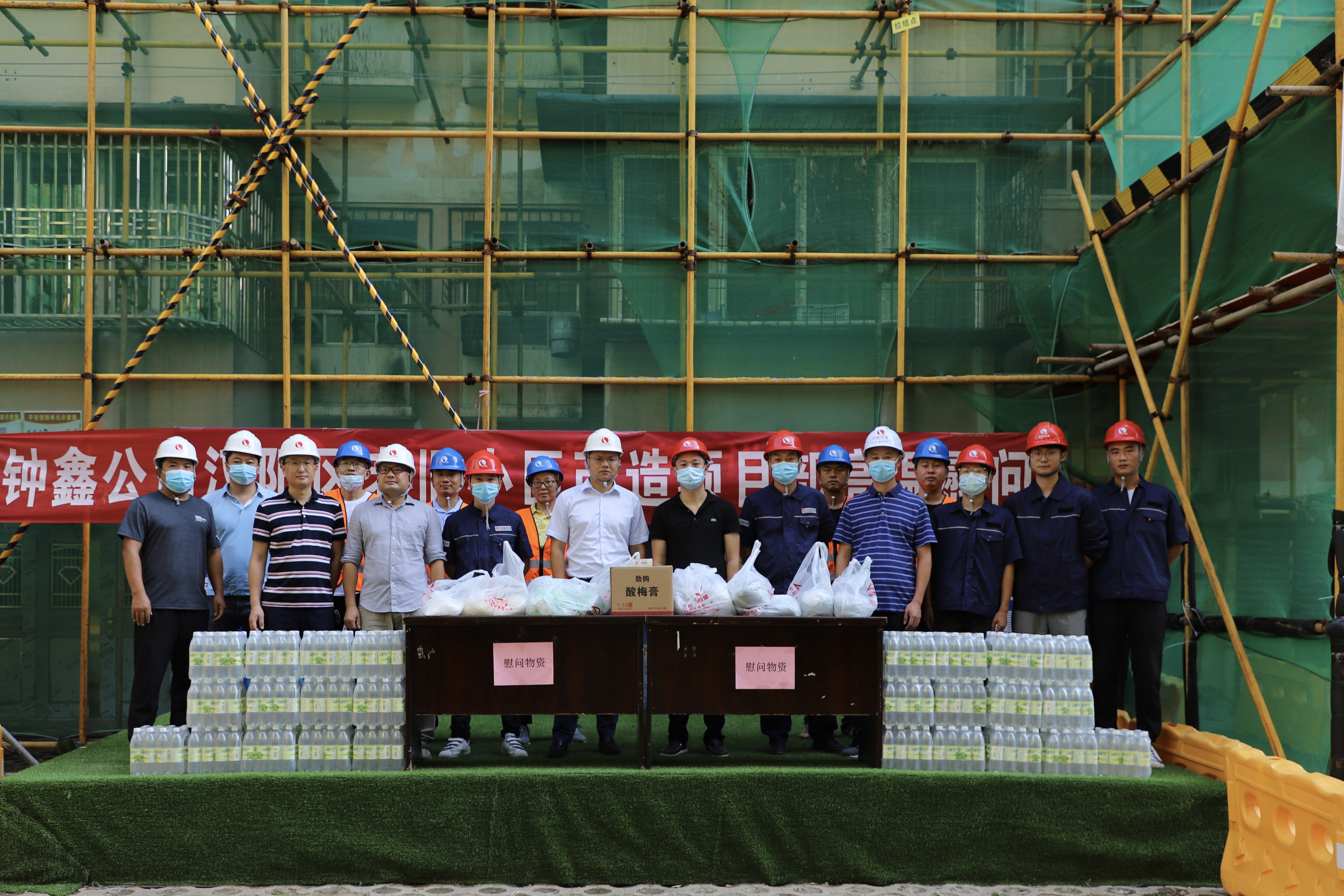 防汛工作剛結(jié)束,武漢又進(jìn)入持續(xù)高溫模式。近期,武漢氣溫連日高達(dá)37℃以上,但廣大一線施工人員仍夜以繼日?qǐng)?jiān)守崗位,爭(zhēng)分奪秒搶奪工期,全力以赴保障生產(chǎn)。8月18日上午,鐘鑫公司黨支部書記、董事長(zhǎng)陳俊俊帶隊(duì),赴月亮灣城市陽臺(tái)項(xiàng)目、地鐵5號(hào)線第7標(biāo)段土建工程項(xiàng)目、地鐵19號(hào)線第5標(biāo)段土建工程項(xiàng)目等六個(gè)項(xiàng)目,關(guān)心慰問堅(jiān)守崗位的一線施工人員,為他們送去一份清涼。