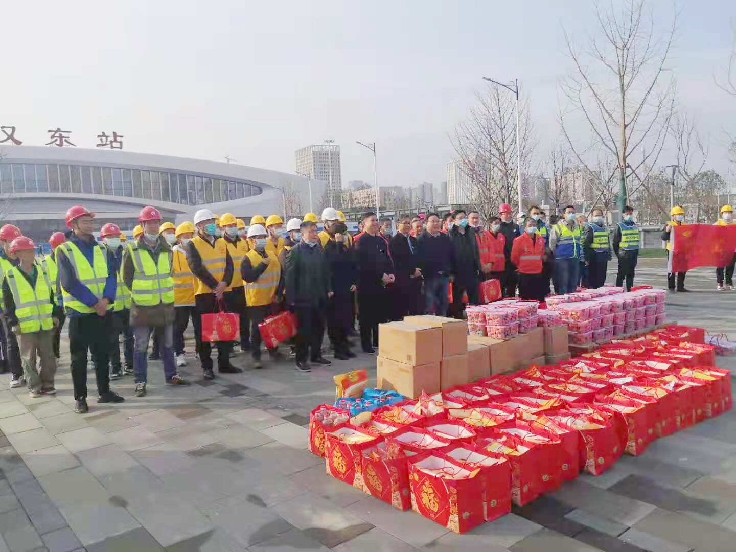 明銘肯定了各參建單位對武漢東站及配套道路工程建設(shè)項目的全力支持,并對春節(jié)期間留漢人員一如既往的辛勤堅守表達(dá)感謝。同時,他也對各參建單位提出相關(guān)要求,一定要切實做好春節(jié)期間留漢員工的疫情防控和生活物資保障工作,讓每個留漢人員都能感受到“家”的溫暖。最后,明銘一行向所有的留漢人員派發(fā)了春節(jié)慰問禮包,并表達(dá)了節(jié)日的祝福,現(xiàn)場氣氛活躍,其樂融融。留漢人員表示,感謝領(lǐng)導(dǎo)的關(guān)懷,即使在異鄉(xiāng),也感受到了家鄉(xiāng)的親切,只要國家、政府有需要,建筑人堅決執(zhí)行,義不容辭。