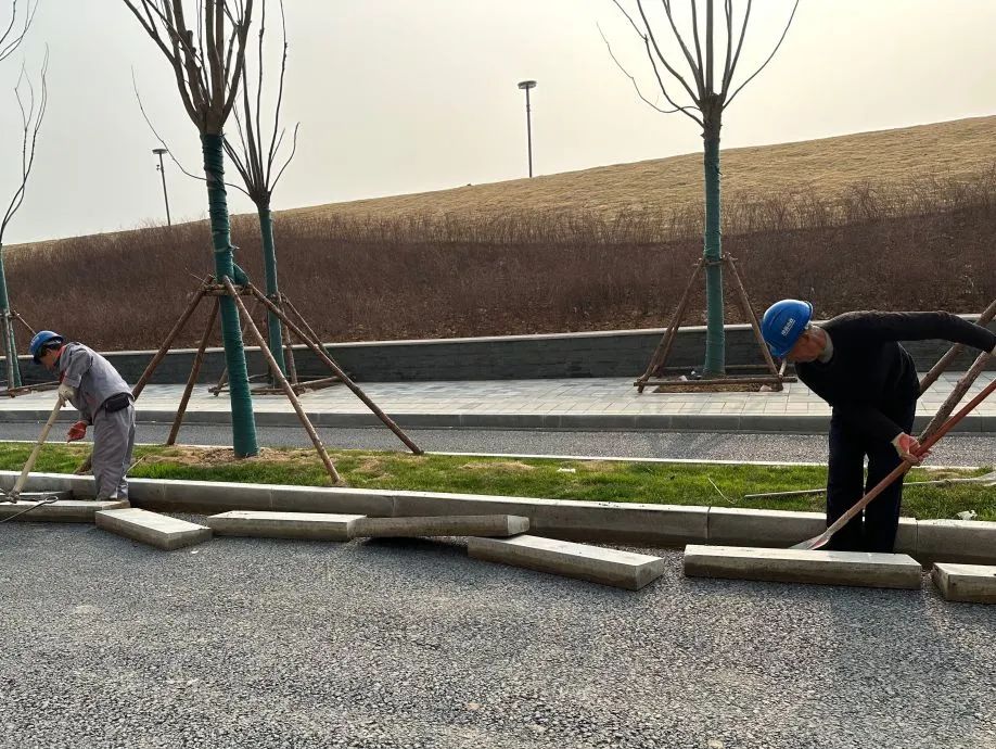 在楊泗港配套建設(shè)的市政道路——新五里后堤與建港路的建設(shè)現(xiàn)場(chǎng),工人正層序分明地開(kāi)展高標(biāo)準(zhǔn)、精細(xì)化人行道鋪裝和站臥石安裝施工。此項(xiàng)目建設(shè)進(jìn)一步完善了楊泗港濱江片區(qū)濱江的路網(wǎng),有效地打通了微循環(huán),確保道路服務(wù)于民,方便于民。
